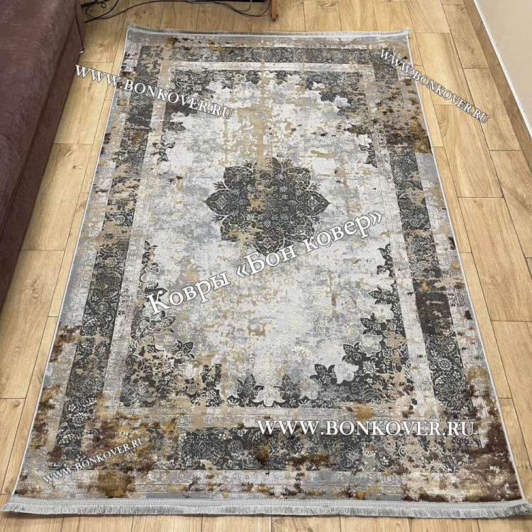 Импозантный Турецкий ковер для гостиной Дизайн 04 Серый наполняет интерьер квартиры теплом и уютом, гармонично сочетает в себе изящество и стиль. Он изготовлен из современных материалов, комфортный и долговечный.